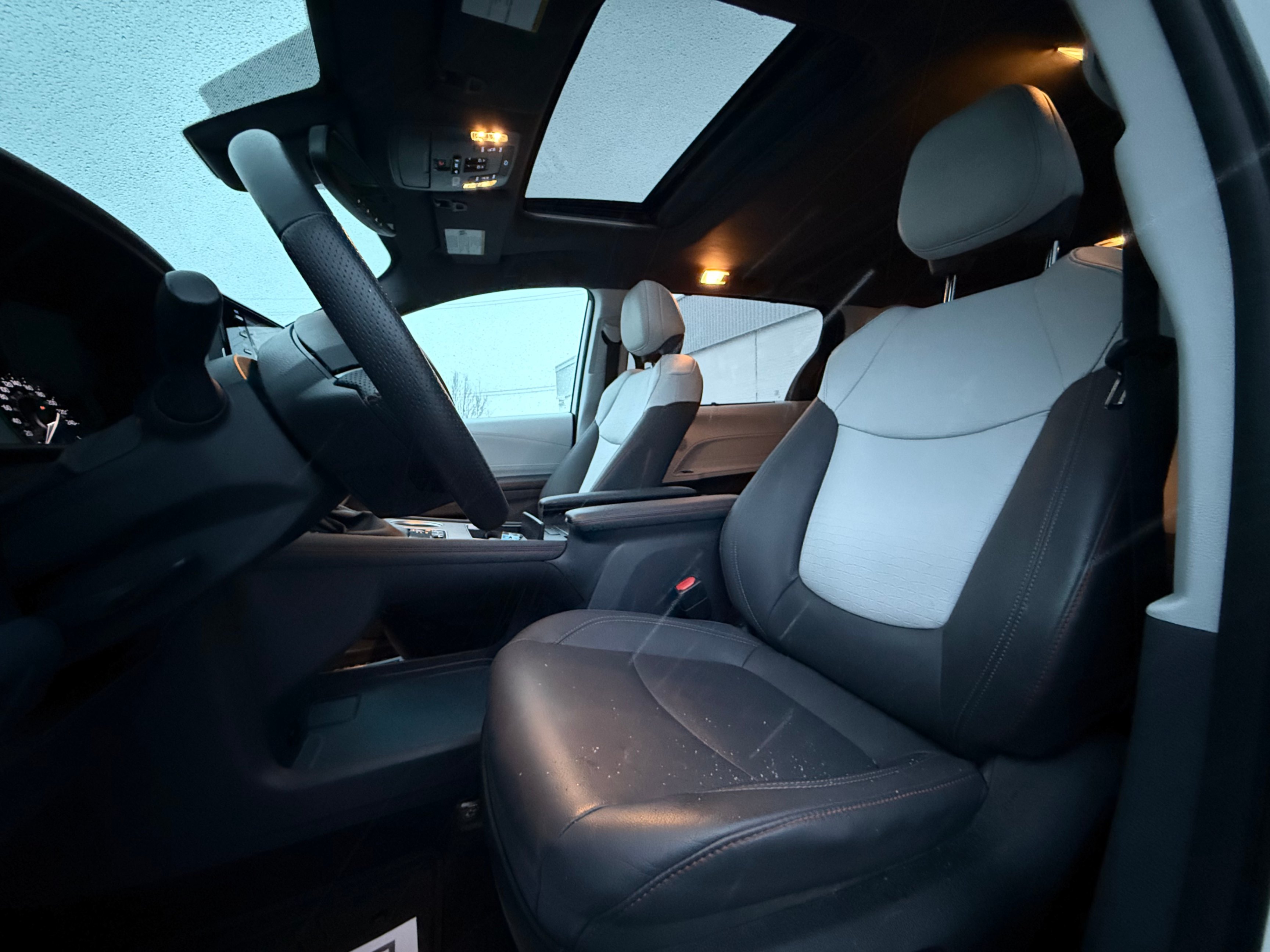 WHITE EXTERIOR | TWO TONE BLACK/WHITE INTERIOR | KM: 28,513 | FUEL TYPE: HYBRID | 2.5L 4-CYLINDER ENGINE | AUTOMATIC TRANSMISSION | 20-INCH ALLOY WHEELS | 7-INCH DIGITAL INSTRUMENT CLUSTER | 9-INCH INFOTAINMENT TOUCHSCREEN | APPLE CARPLAY & ANDROID AUTO | WIRELESS BLUETOOTH CONNECTIVITY | DUAL-ZONE CLIMATE CONTROL | FRONT HEATED SEATS | POWER SEATS | SUNROOF | REARVIEW CAMERA | ADAPTIVE CRUISE CONTROL | LANE DEPARTURE ALERT WITH STEERING ASSIST | BLIND SPOT MONITORING | REAR CROSS-TRAFFIC ALERT | PUSH-BUTTON START | POWER SIDE MIRRORS | POWER SLIDING DOORS | POWER LIFTGATE | KEYLESS ENTRY | AUTO HOLD | DRIVE MODES: ECO, NORMAL, SPORT | HEATED STEERING WHEEL | 7 PASSENGERS